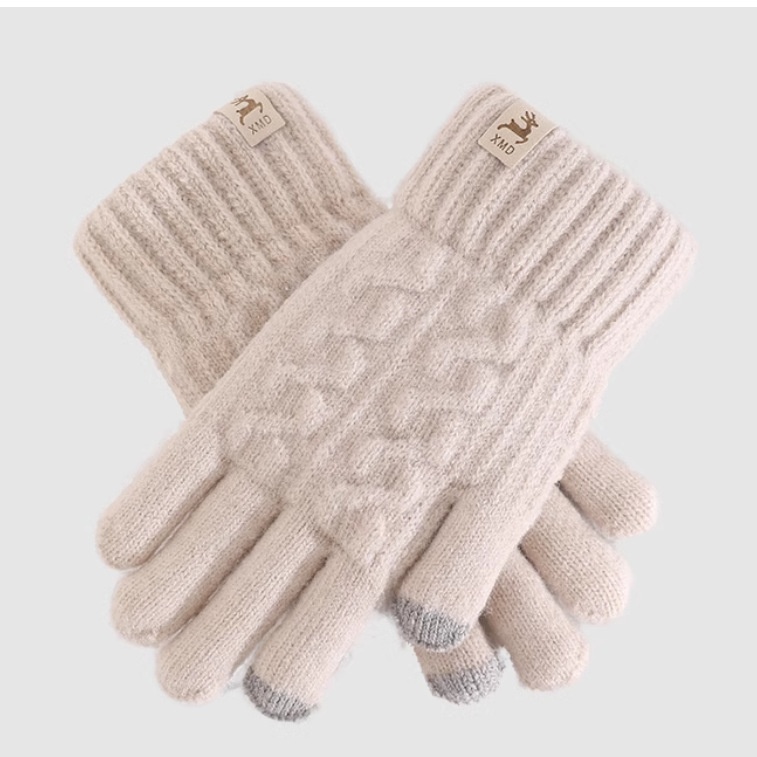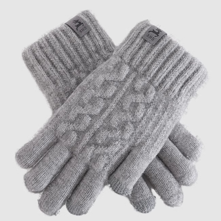 001 Solid Color Winter Outdoor Sports Skiing Cycling Knitted Wool Cold-Proof Warm Fingered Gloves