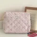 Name: 2024 Pink Bow Quilted Women"s Makeup Bag