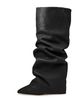 2025 New Thick Slip-On Plus Size Fashion High Heel Ruched Pile Boots Performance Skirt Pants