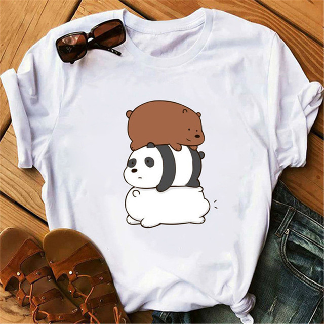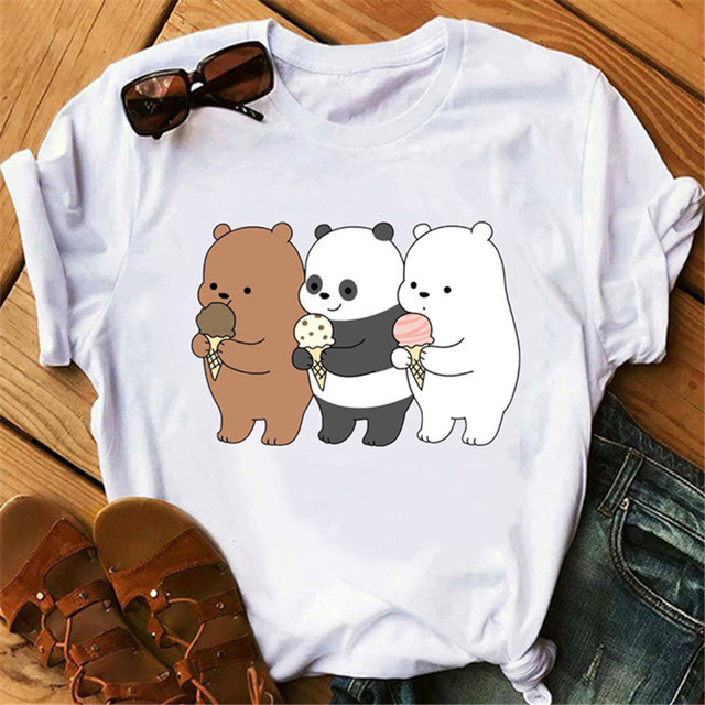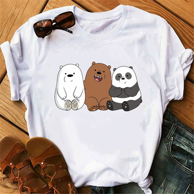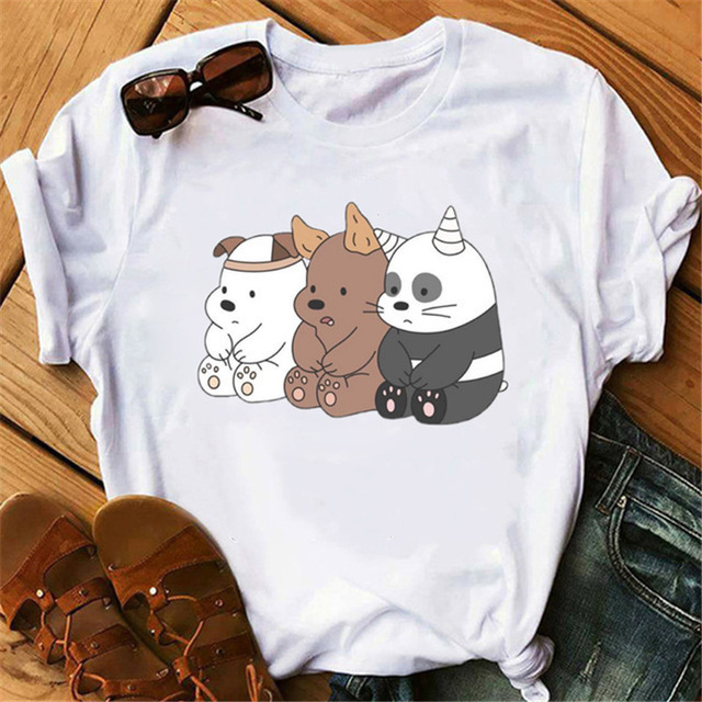 B6 2024 Three Bears Printed T-shirt for Female Students Loose and Slim Girl Women's Trendy Large
