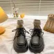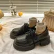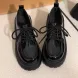 Black thick soled versatile lace up small leather shoes for women 2024 spring and autumn season new British style JK Le Fu single shoes