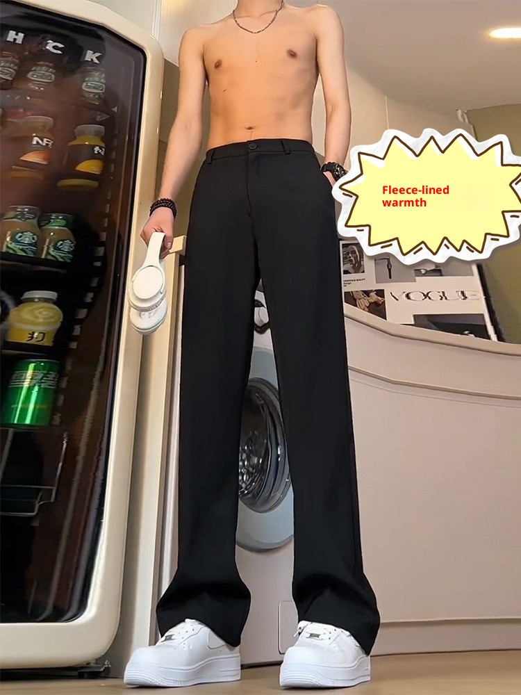 boy Black Straight-Leg Trousers With Draped Feel, High-End Scimitar Flared For Men, Spring And Autumn Long Casual Suit Pants