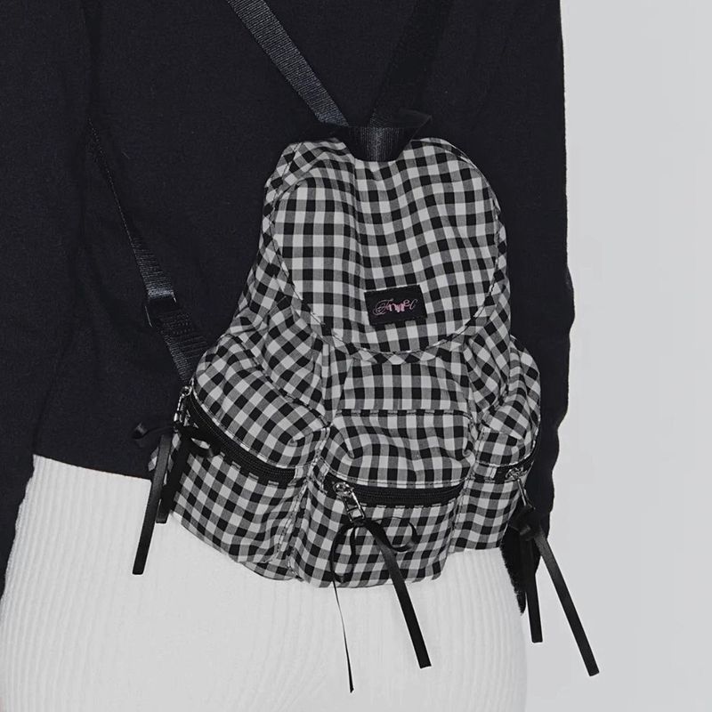 Checkered Women's Bow Backpack Multifunctional Casual Nylon School Bag 2025 New