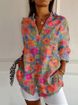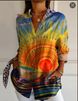 2025 Hot Sale 3D Color Block Print Pattern Autumn Casual Loose Shirt Women's Button-Up Top