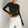 Eiropas un Amerikas sieviešu apģērbs 2023. gada pavasara jauns T-krekls, vienkrāsains, apaļš kakla apakšējais krekls, plāns, garām piedurknēm, sievietēm