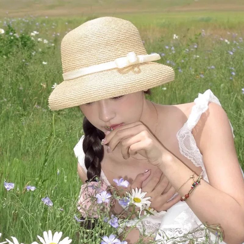 Hepburn-style high-end wicker summer bow handmade luxury women's straw hat