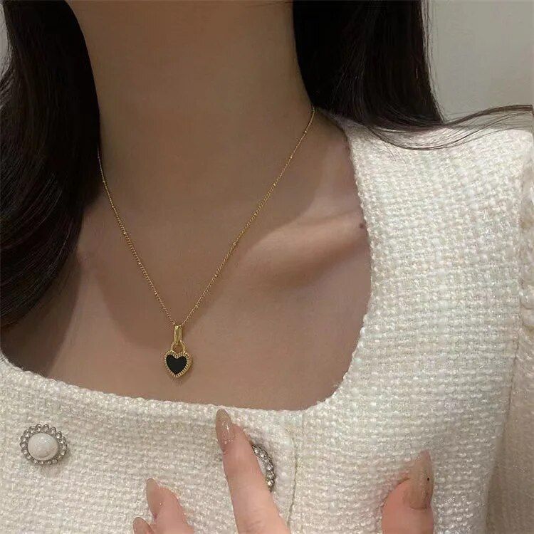 2023 Vintage Double Sided Heart Pendant Necklace For Women Girl Clavicle Chain Choker New Fashion Trendy Jewelry Gift Party