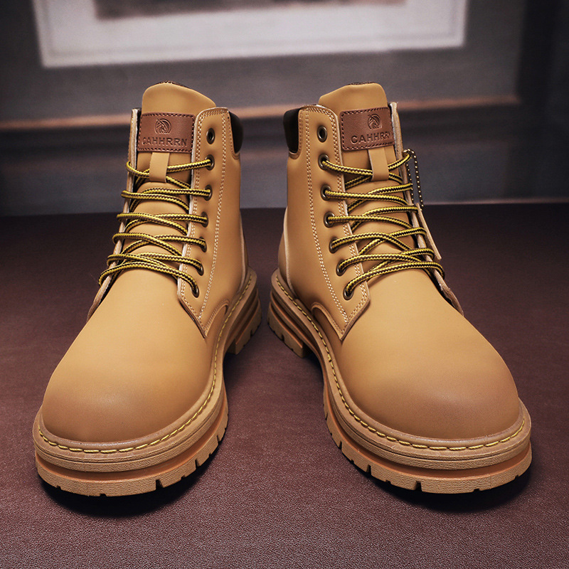 Jauni ādas augstie zābaki vīriešu britu vintage ādas zābaki lieli dzelteni zābaki_voghion.com