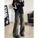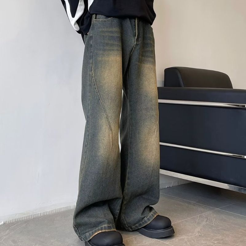 Jeans for men, autumn gradient washed vintage, rugged and cool, slightly flared pants, American high street loose straight leg casual pants