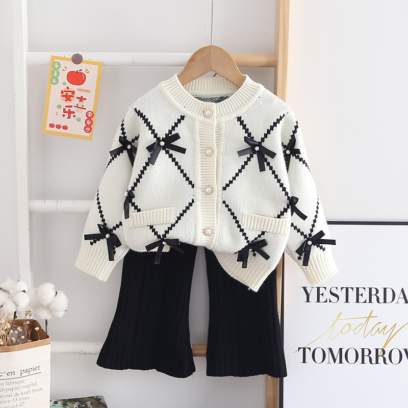 Jin Yongxiong Girls' Sweater Set 2022 Autumn/Winter New Bow Cardigan Top Knitted Two Piece Set Korean