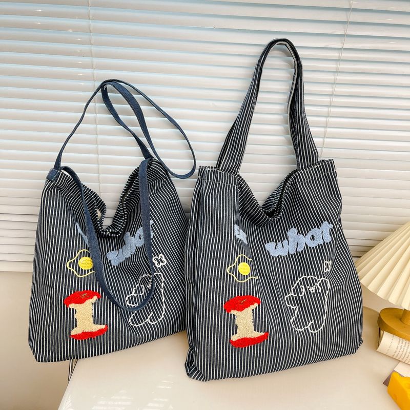 Korean fashion striped canvas bag women's bag 2024 new large capacity commuting tote bag niche casual cloth bag