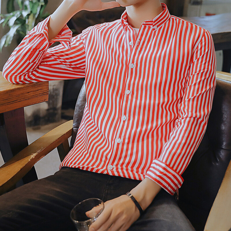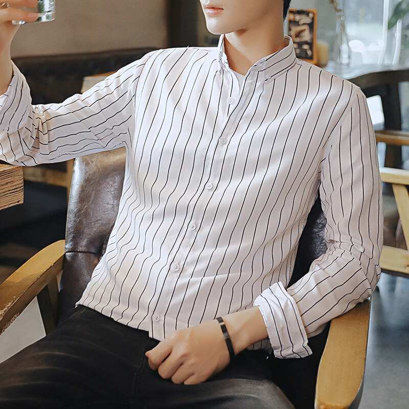 Korean version of new long sleeved shirts for spring and autumn seasons, with a sense of luxury and drape. Fashionable brand shirts, versatile tops, casual jackets, men's clothing