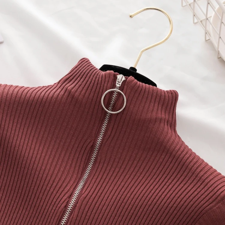 Korejas vienkrāsains rāvējslēdzēja trikotāžas džemperis rudens ziemas ziemas, balts džemperis, džemperis, 2023. gada slaidas sievietes