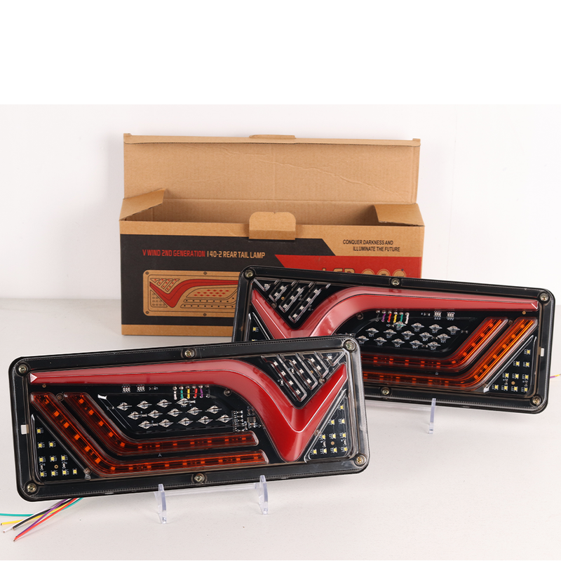 2X 12/24V Dynamic LED Truck Tail Light Turn Signal Rear Brake Lights Trailer Lorry Bus Camper Caravan Lamps Reverse Lamp