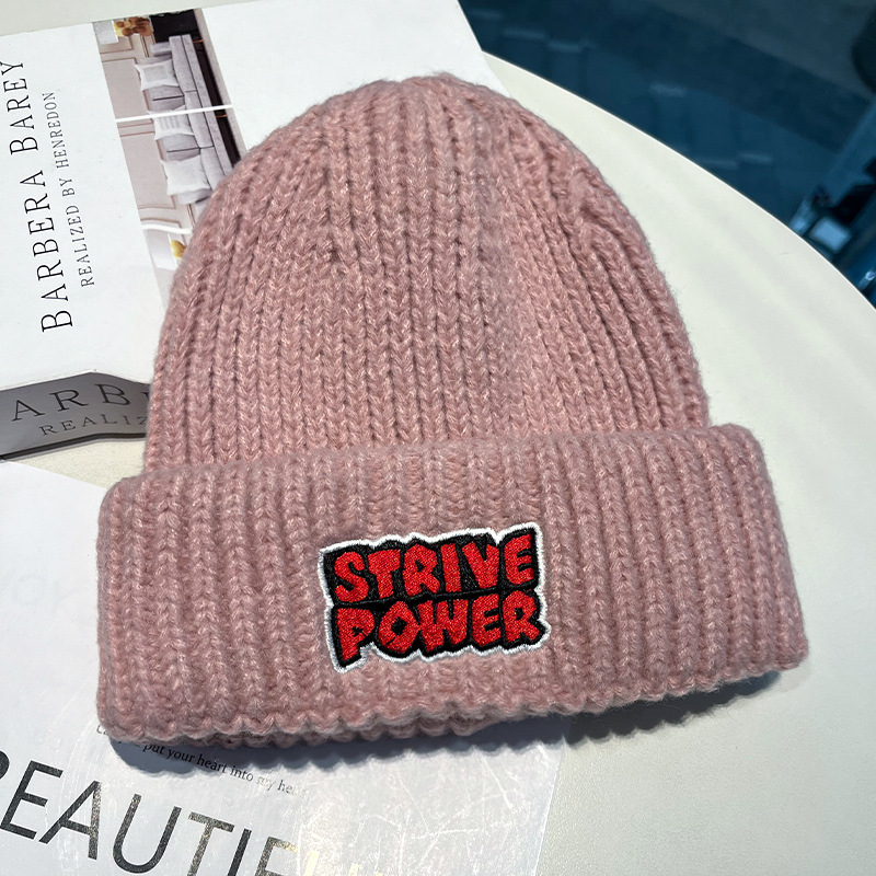 Letter Embroidered Woolen Children's Pullover Outdoor Warmth Knitted Student Winter Versatile Couple Cold Hat