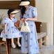 Māte un bērni Vecāku un bērnu tērps kleita ar īsām piedurknēm māte un meita ar izšuvumu tīras kokvilnas plāni, stilīgi meitenes svārki