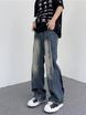 Trendy American high-end patchwork jeans, men's loose and high-end wide leg sagging straight leg pants