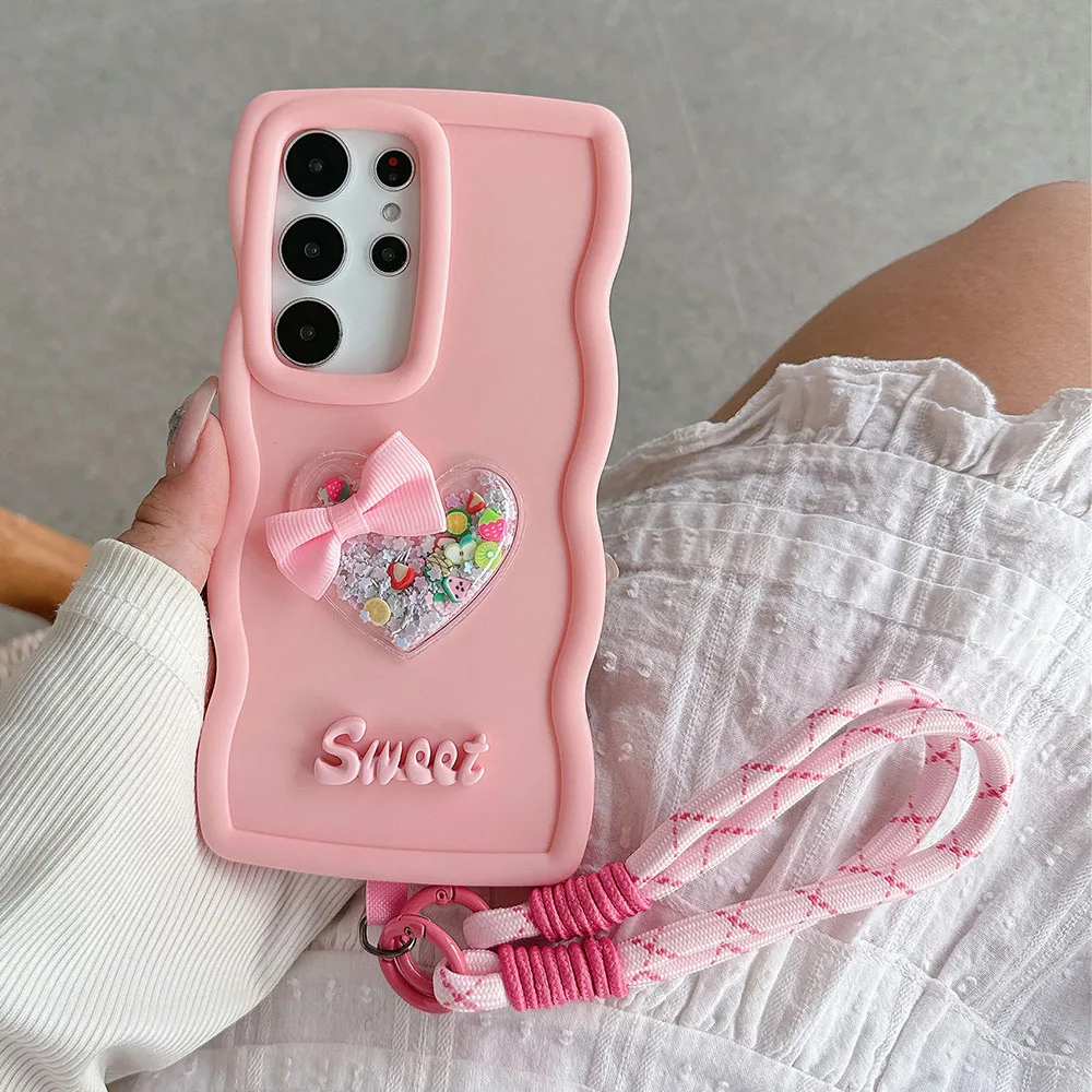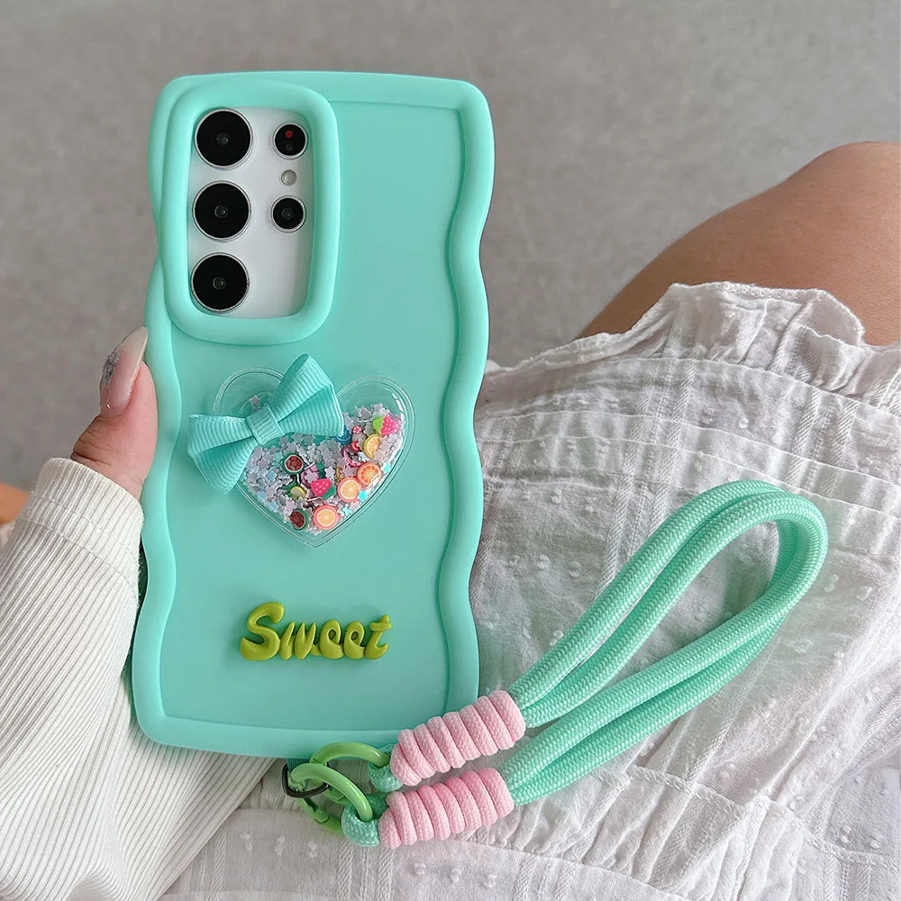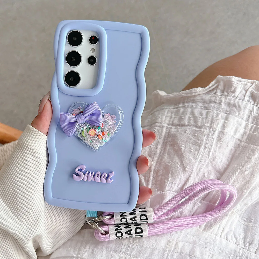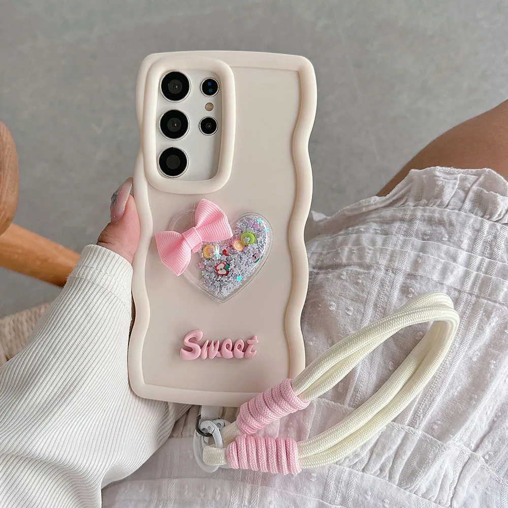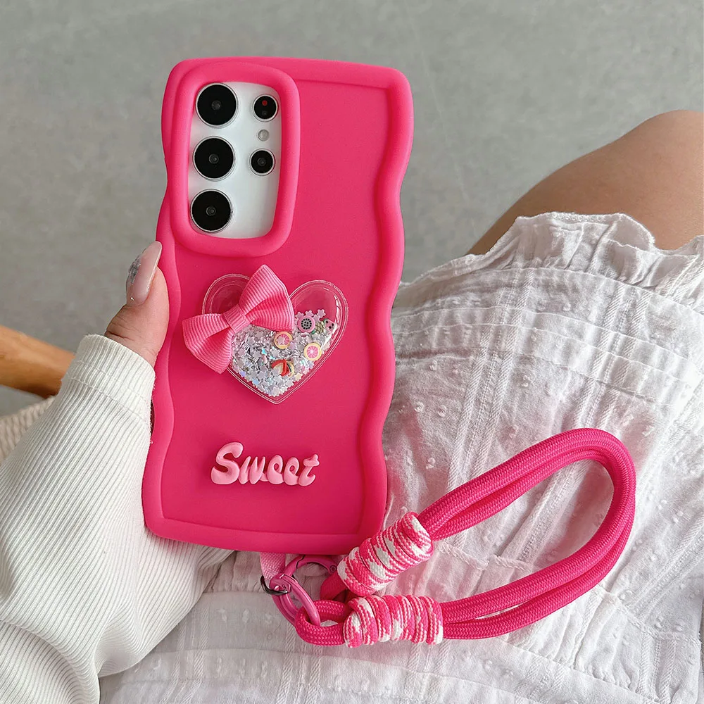 Moto G54 G04 Quicksand Heart Lanyard Rope Case For Motorola Moto G04 G14 G24 G34 G84 5G G82 G52 G22 G32 G53 G23 G13 G04S Cover