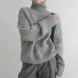Cashmere Knitted Sweater for Women Elegant High Collar Turtle Neck Loose Sweater Women Thicken Warm Solid Color Knitwear Jumper