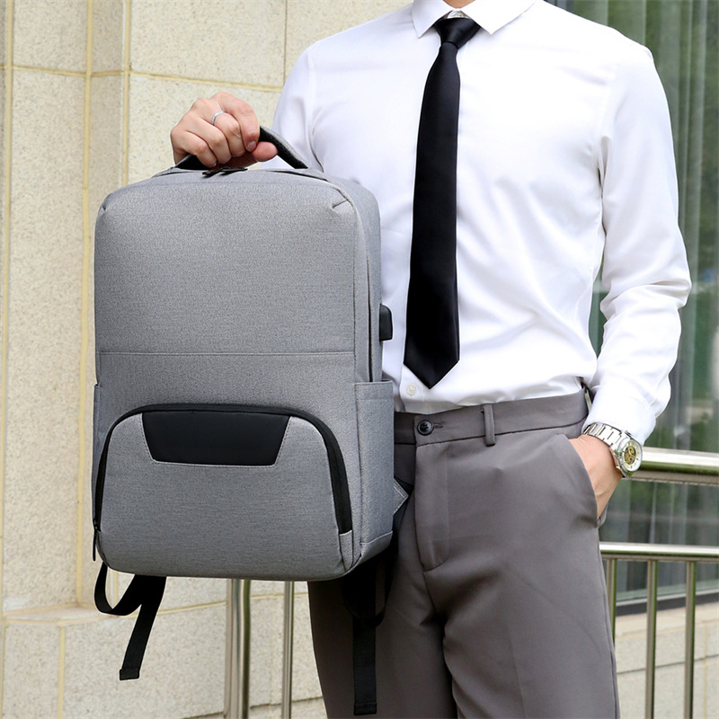 New Solid Color Versatile Men's Backpack Business USB Charging Computer Casual Large Capacity Student Bag