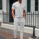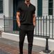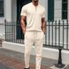 New Waffle Texture Stand Collar Small Zipper Solid Color Men's Short Sleeve Long Pants Set