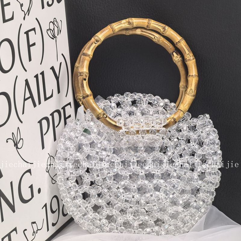 Niche Light Luxury High-End Evening Socialite Hollow Handmade Bag Double Ring Bamboo Handle Woven Bag with Inner Pocket