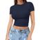 Pārrobežu Eiropas un Amerikas sieviešu naba Baring T krekls Hot Girl Summer Pulover Top Sieviešu plāns, apaļš kakla izgriezums Modes piena zīda īsām piedurknēm