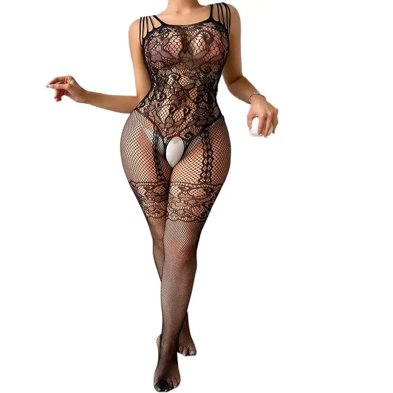 Plus Size Crotchless Transparent Fishnet Open Bra Bodysuit Porno Lingerie Women Bodystocking Exotic One Piece Erotic Costumes