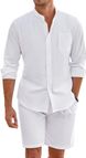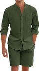 Purchase by Size Chart Men's summer two-piece polyester button up shirt long sleeved shorts cardigan simple casual beach outfit