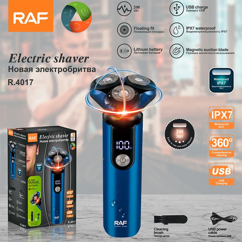 RAF Electric Shaver Washable Rechargeable Three Heads Independent Floating Digital Display Portable