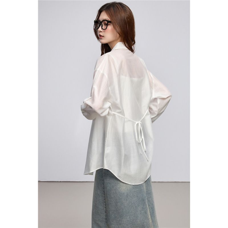 Real Shot White Long-Sleeved Sunscreen Shirt Women's Summer Cardigan Strap Niche Tencel Thin Loose Top