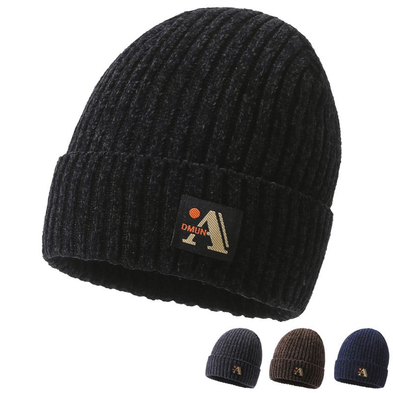 Autumn and winter men's hat, chenille velvet jacquard velvet thick woolen hat, skiing knitted winter cycling windproof hat
