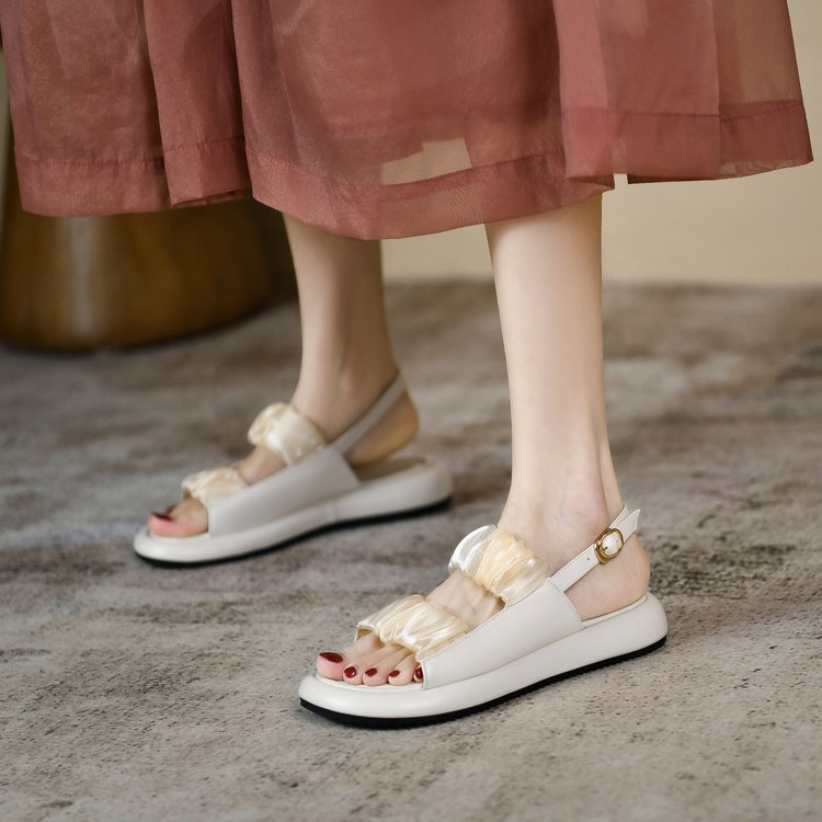 Ruo Dan oriģinālās zīda sieta ~ īstas mīkstas ādas mākoņu sajūtas biezas zoles sandales un čības sieviešu vasaras virsdrēbes ikdienas iešļūcenes