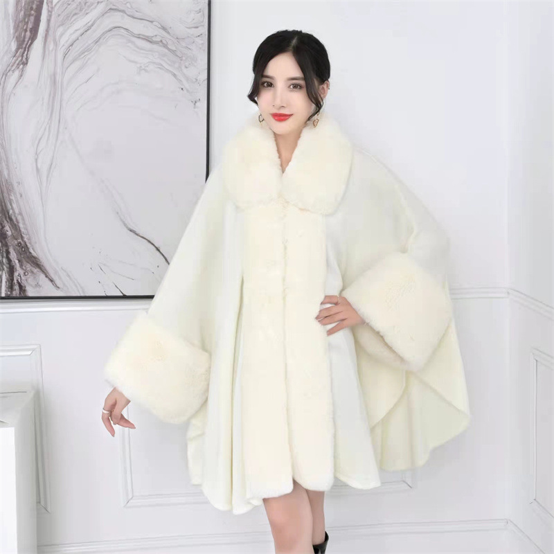 Women's Shawls Autumn And Winter Fashion New Loose Large Size Coat Fur Collar Sweater Outer Wear Medium Long Solid Color Cloak Shawl 1188