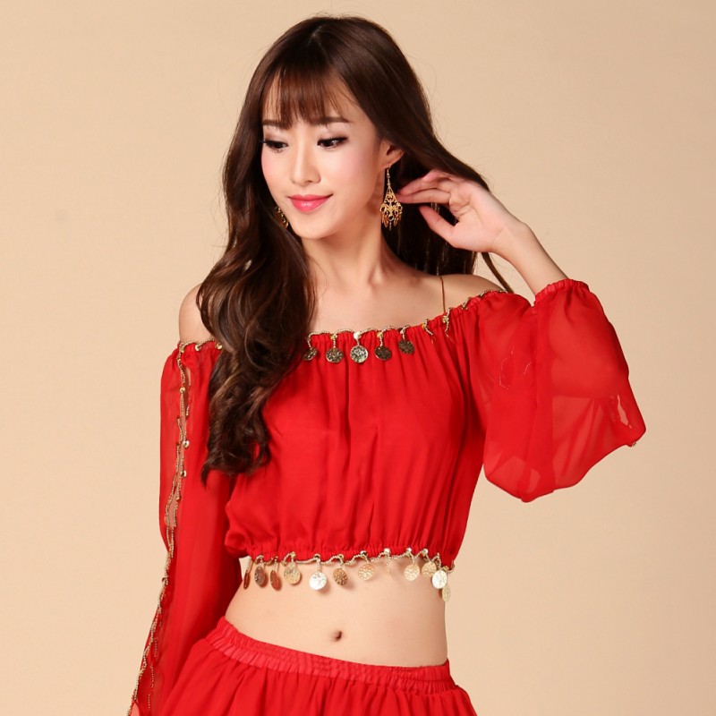 Belly dance costumes, spring and summer tops, dance sets, performance costumes, Indian dance practice costumes, tops, lantern long sleeves