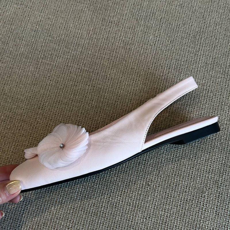 Sheepskin Edition ~ Stunning Floral Square-Toed Flat Shoes for Women 2025 Spring New Fairy Style Closed-Toe Backless Sandals