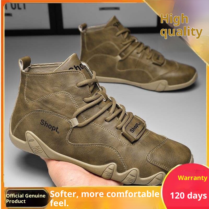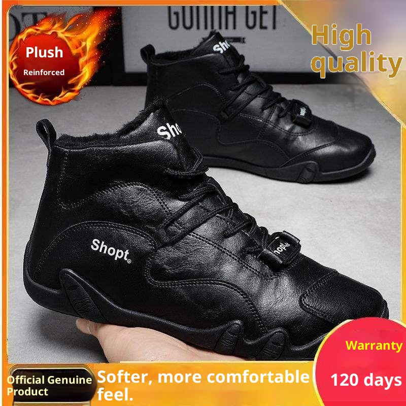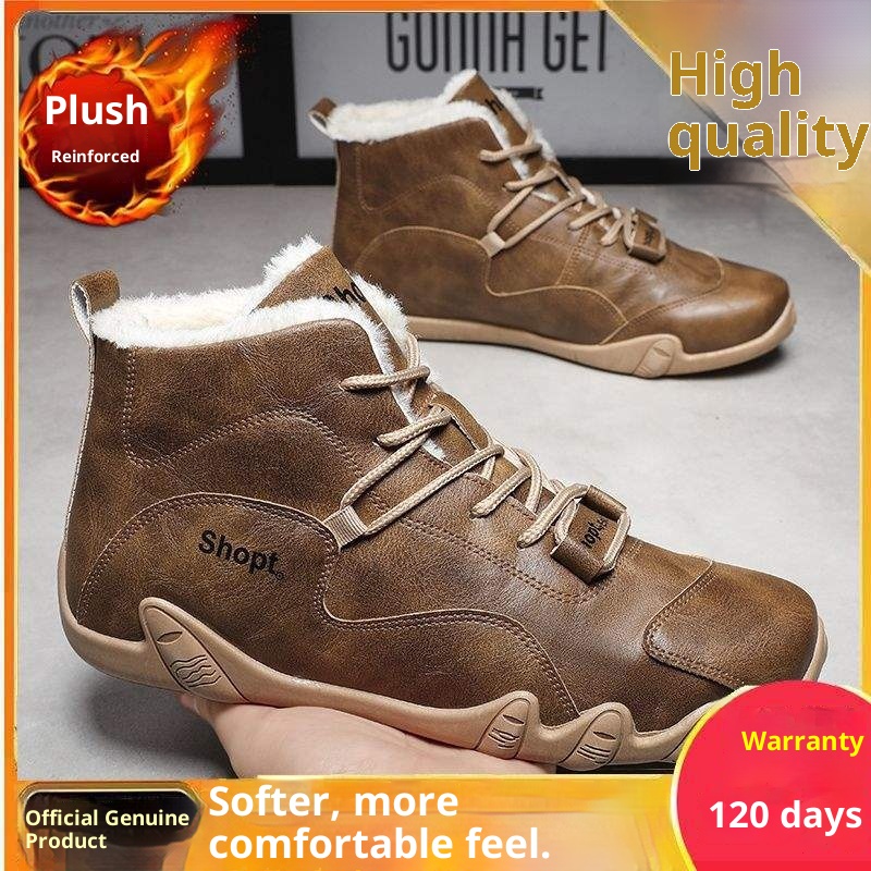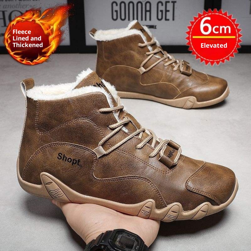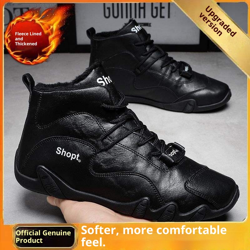 ShoeGlobe Men's Autumn Winter High-top Outdoor Hiking Waterproof Non-slip Leather Work Safety Martin Boots Trendy Fleece-lined