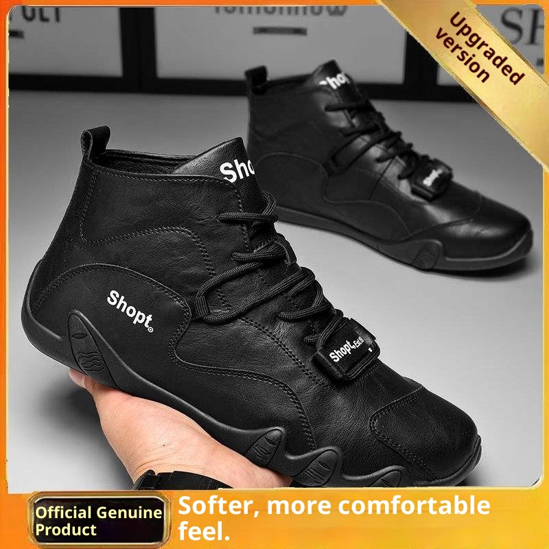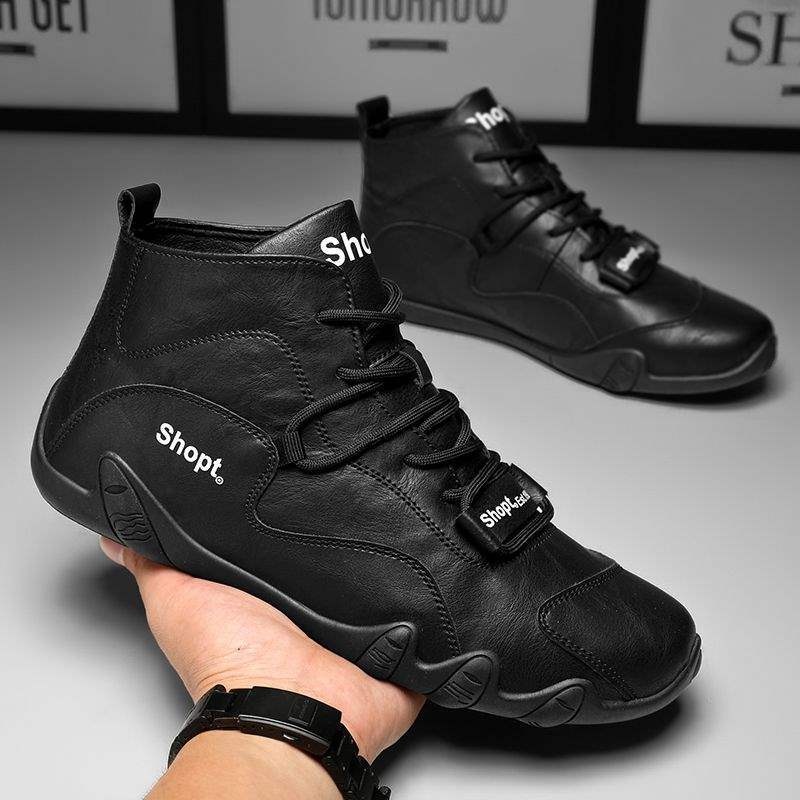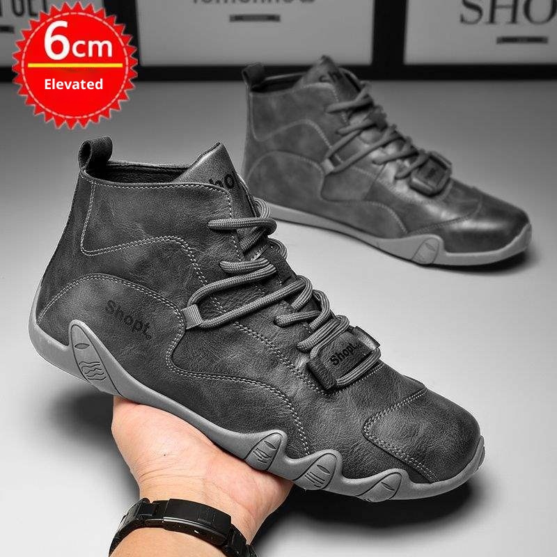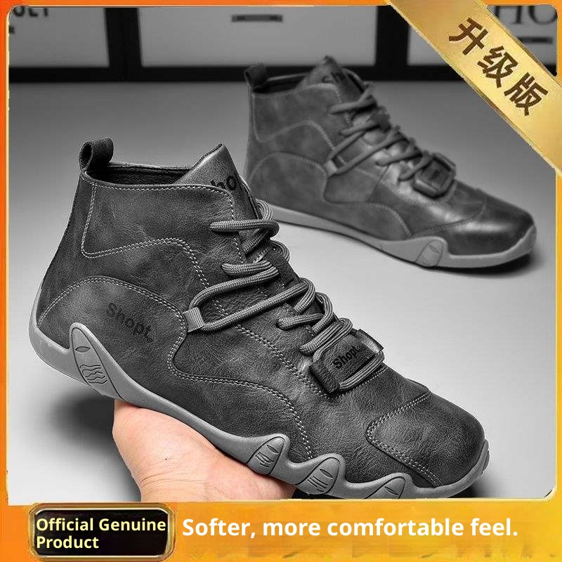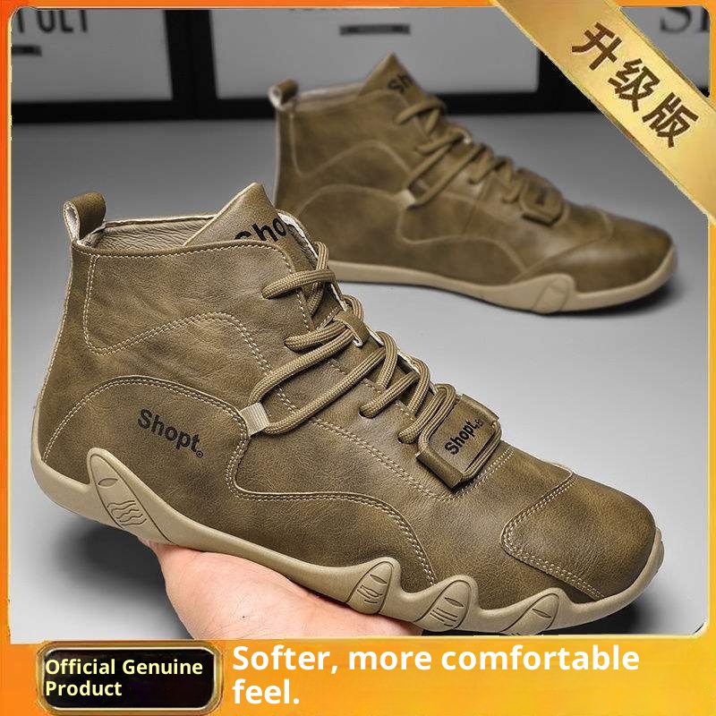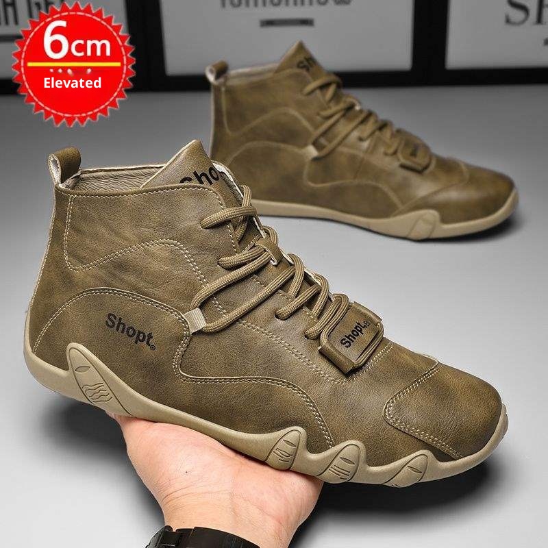 ShoeGlobe Men's Autumn Winter High-top Outdoor Hiking Waterproof Non-slip Leather Work Safety Martin Boots Trendy Fleece-lined