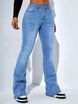 Sieviešu apģērbs ar augstu vidukli Taisni džinsi Slim Fit Slim Elastīgas bikses ar uzmavu