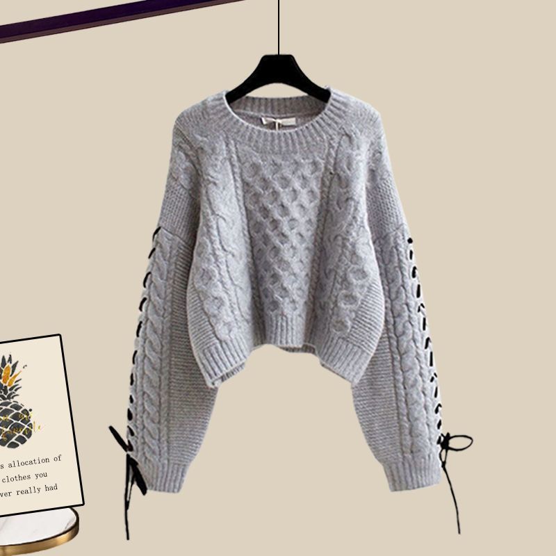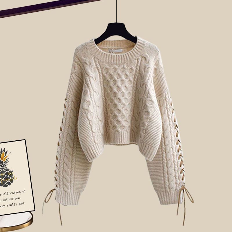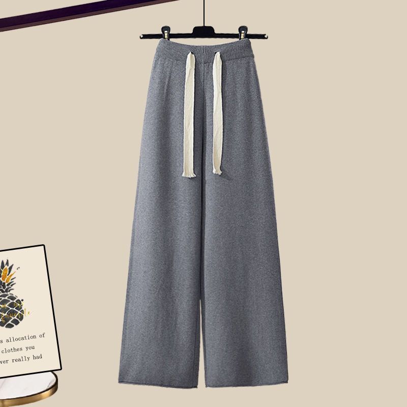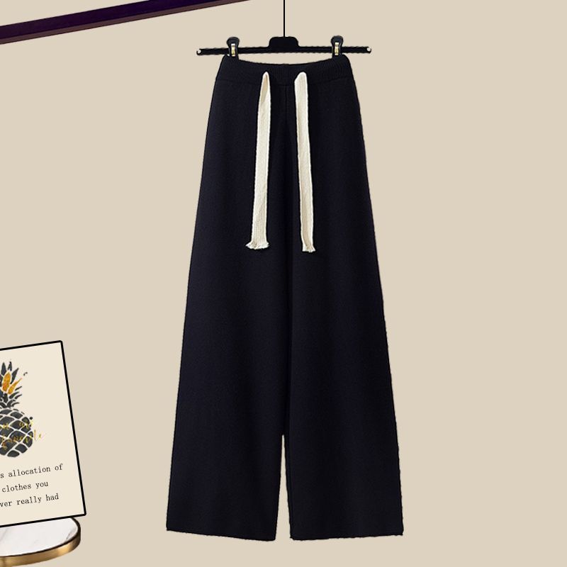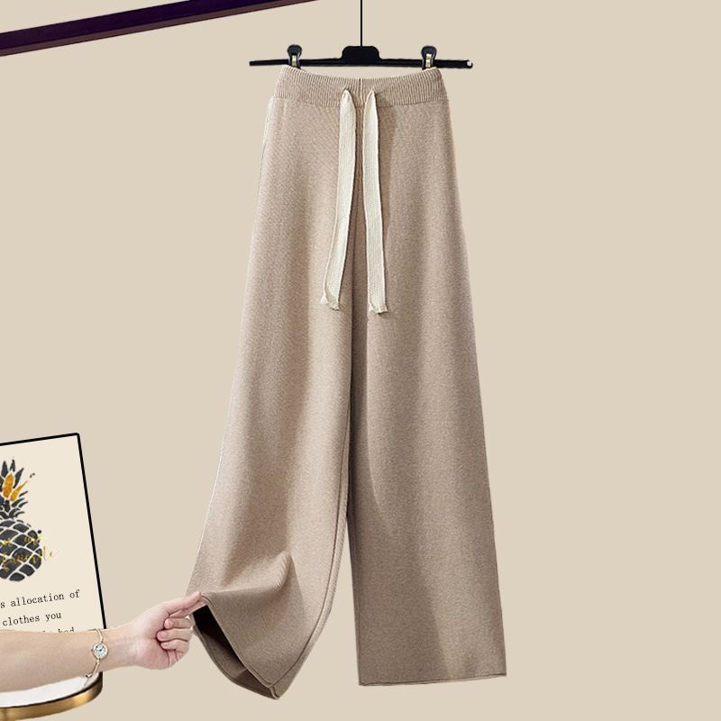 Sieviešu apģērbs Jauns, biezināts veste, daudzpusīgs trikotāžas džemperis, platas bikses trīsdaļīgs uzvalks