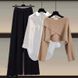 Sieviešu apģērbs Trikotāžas džemperis, krekls, platas bikses, trīsdaļīgs uzvalks