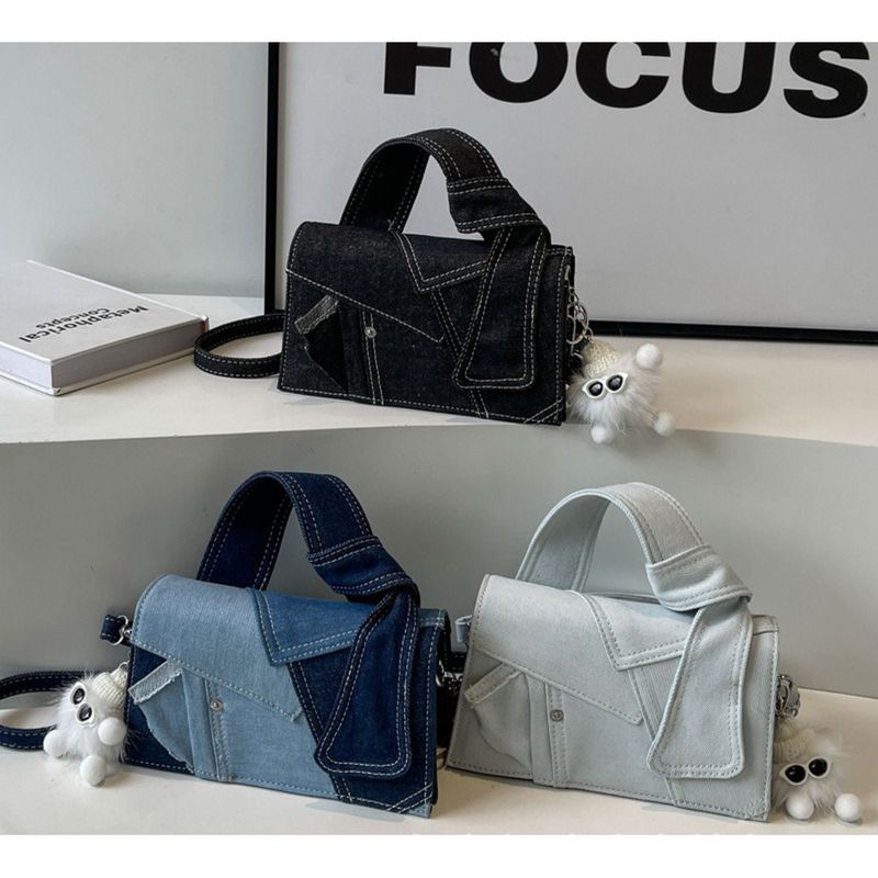 Handbag for women, fashionable denim patchwork crossbody bag, niche and versatile casual shoulder bag, simple denim small square bag