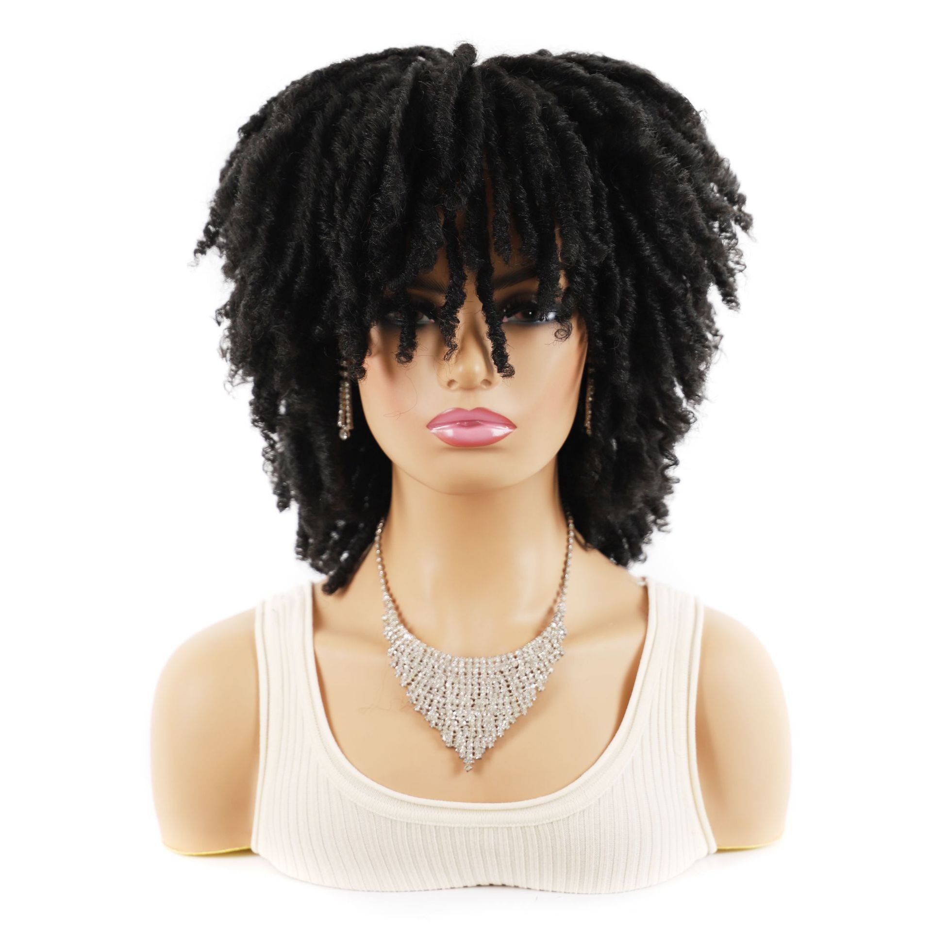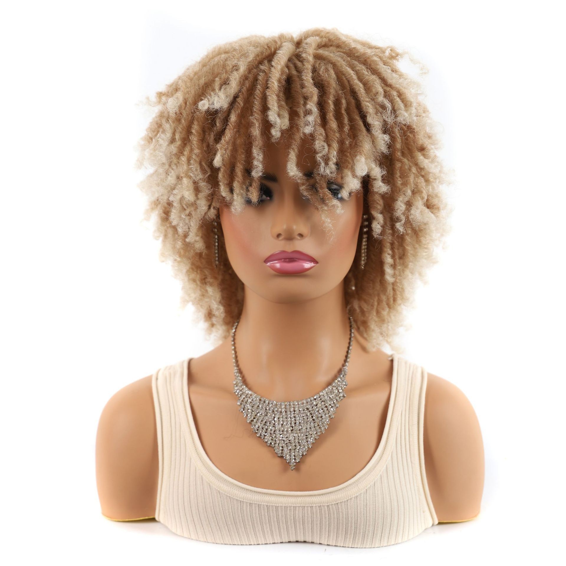 Sintētiskās šķiedras parūka sieviešu caurulīte ar dobu, cirtainu parūku, mazu, netīru bizīšu parūkas galvas pārsegu