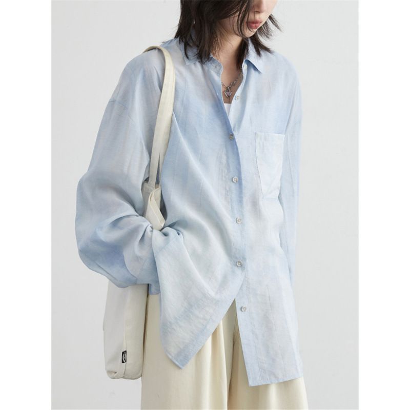 Summer Textured Tie-Dyed Lapel Loose Long-Sleeved Shirts, Sun-Protective Shirts, Thin Coats, Air-Conditioned Shirts