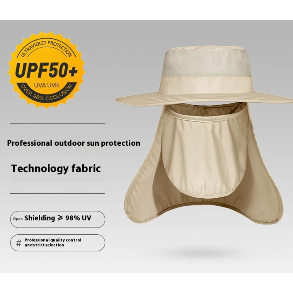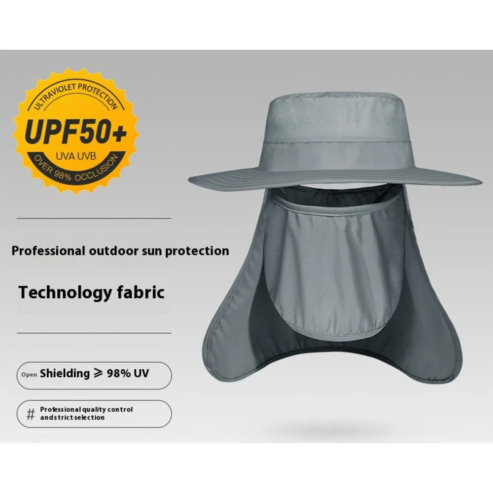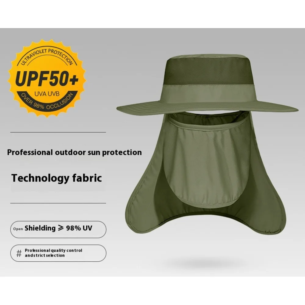 Sunscreen fisherman hat, outdoor fishing, mountain climbing, sunshade hat, men's oversized brim, hat curtain, breathable mask, sun hat, summer