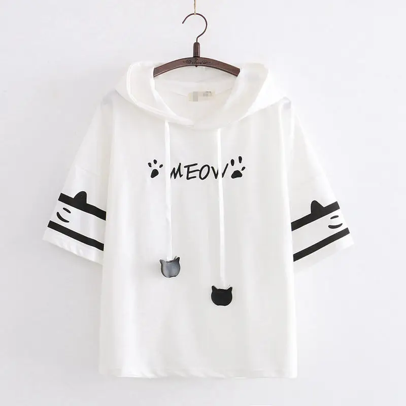 T-shirts Women Patchwork Loose Haruku All-match Short Sleeve Hooded Summer Cute Korean Version Stylish Student Tops799