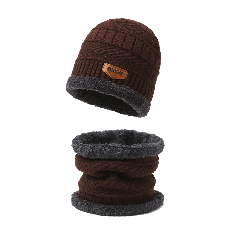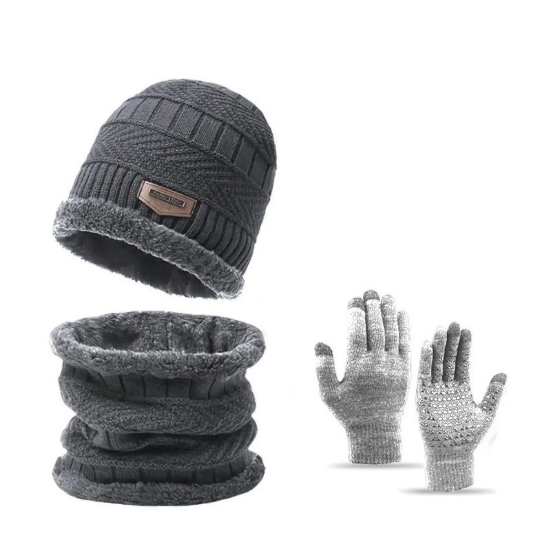 Thickened Cross-Border Knitted Touchscreen Woolen Gloves Non-Slip Winter Scarf Hat Fleece-Lined Three-Piece Set Warm