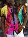 Vīriešu apģērbs 2024. gada vasaras īsroku krekls ar pogām, modes vīriešu krekls, 3D digitāls ikdienas svītrains kardigans, vairumtirdzniecība