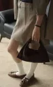 Hot Russia Soft Lamb Cashmere Large Triangle Tote Winter 2025 Genuine Leather Veet Women Underarm Shoulder Bag Handbag