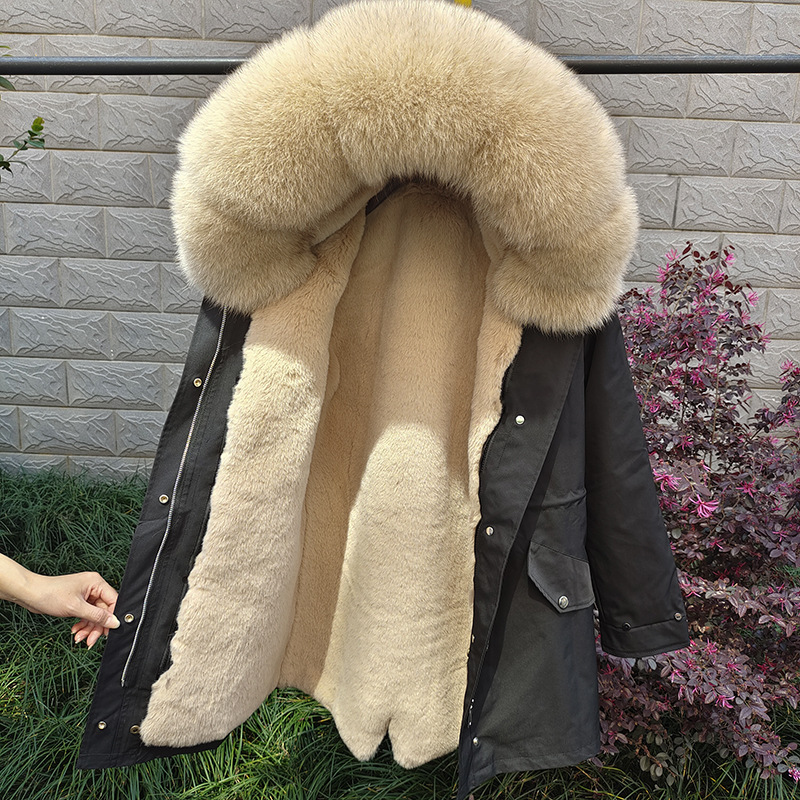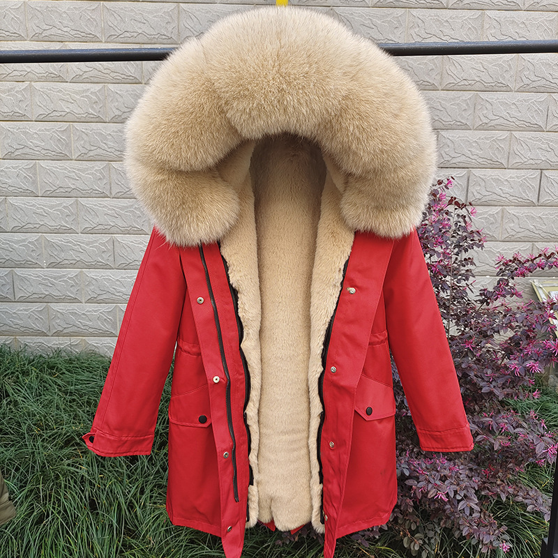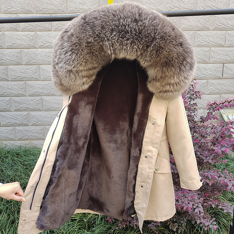 Sieviešu apģērbi Jauns ziemas Sieviešu Parka Vidēja Garuma Noņemams Laineris Lapsas kažokādas apkakles kažoks